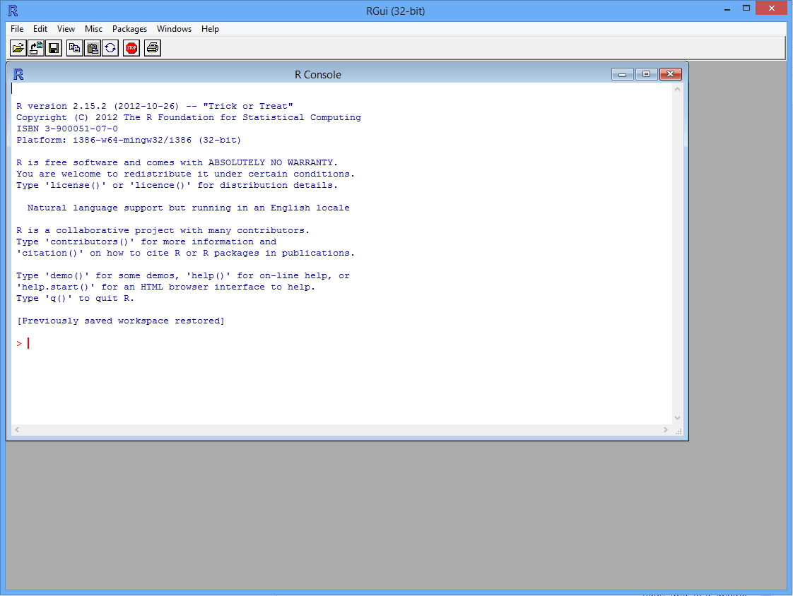 بعد التحميل يمكنك تشغيل بيئة برمجة الـ R كما هو موضح في الصورة (بيئة البرمجة هو برنامج يعطيك واجهة تسمح لك بالستعمال اللغة بطريقة ملائمة, أحسن من الكتابة في محرر نصوص ثم التشغيل اليدوي)