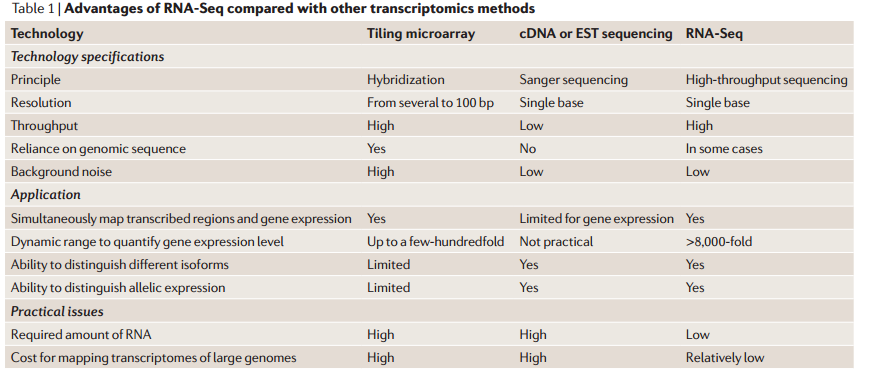 مقارنة بين تقنية الـ RNA-Seq والتقيات التي قبلها (المصدر)