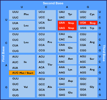 مثال لجدول الكودونات في خلايا الإنسان (المصدر)