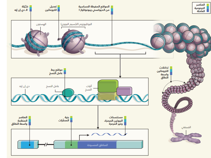 رسم تخطيطي يوضح كيفية ضغط الحمض النووي ومفهوم ال epi-genome (مجلة Nature الإصدار العربي أكتوبر 2012)