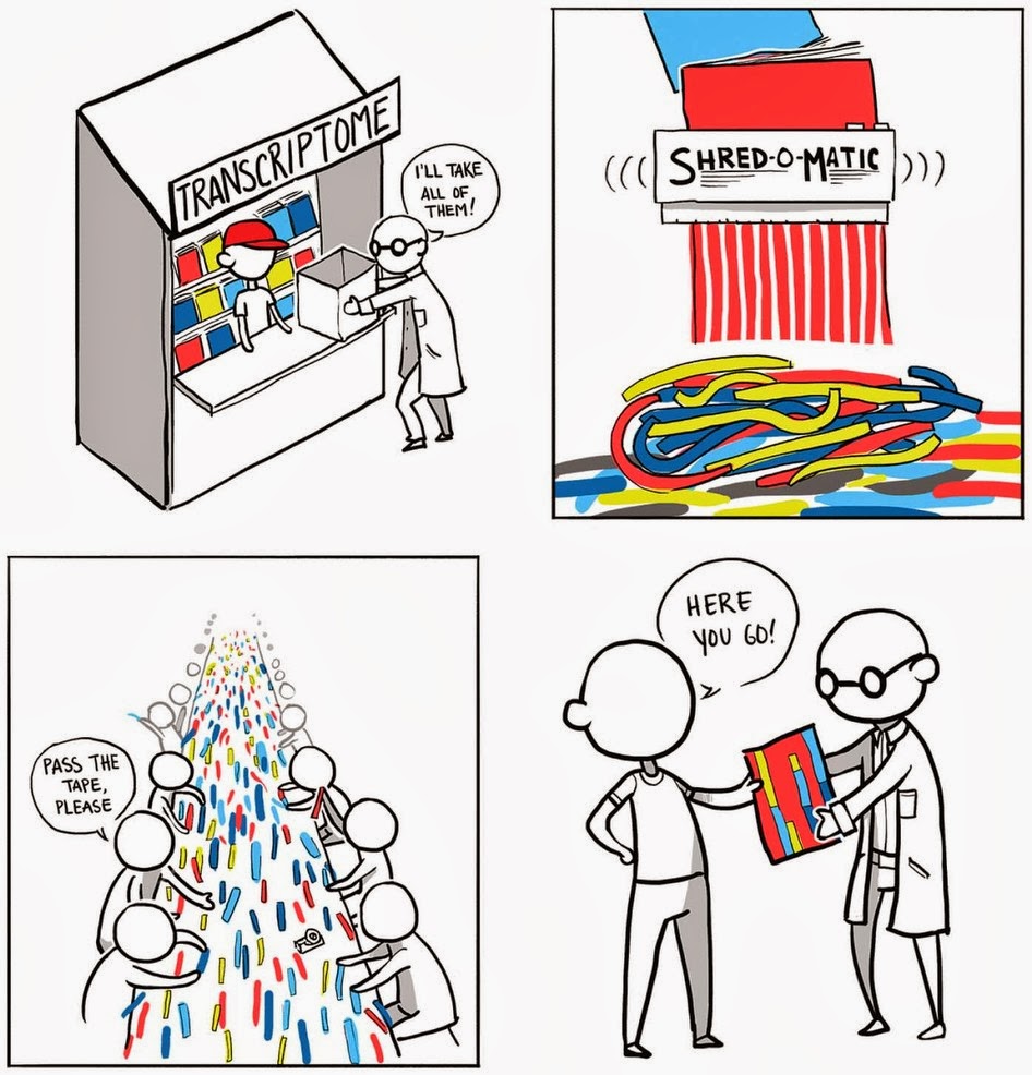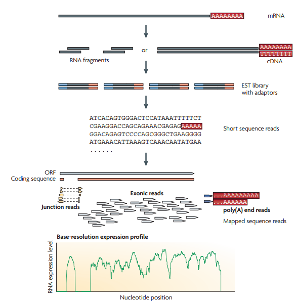 يمكننا تلخيص مبدأ تقنية الـ RNA-Seq في الخطوات التالية( لاحظ المخطط):