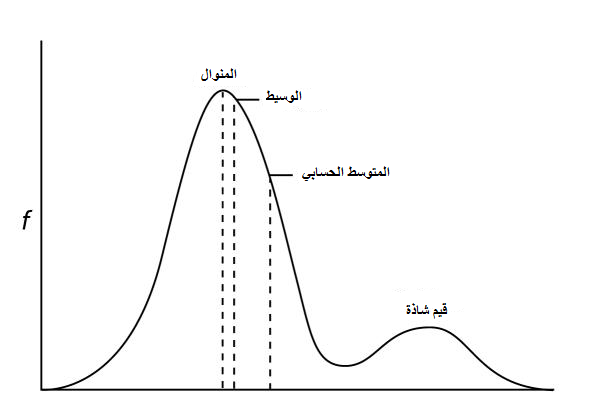مخطط يوضح بعض مقاييس النزعة المركزية